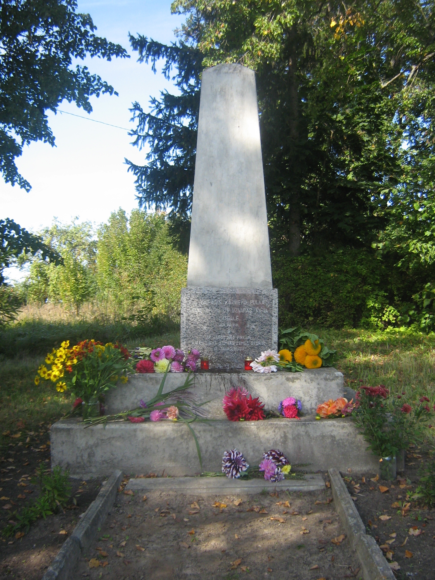 1936. gada 16. augustā brīvības cīņu atcerei atklāj granīta, kurā iegravēti vārdi: ” 1. Liepājas kājnieku pulka cīņu, upuru un uzvaras vieta Latgalē, 1919. gada 26. augustā ar asinīm mēs pirkām katru savas dzimtās zemes stūrīti-tā tagad mūsu.” To uzstādīja Rēzeknes aizsargu pulka vadība, iesvētīja Rēzeknes aizsargu pulka vecākais mācītājs Vincents Tomašūnas ar vietējo draudzes prāvestu Kalinku.